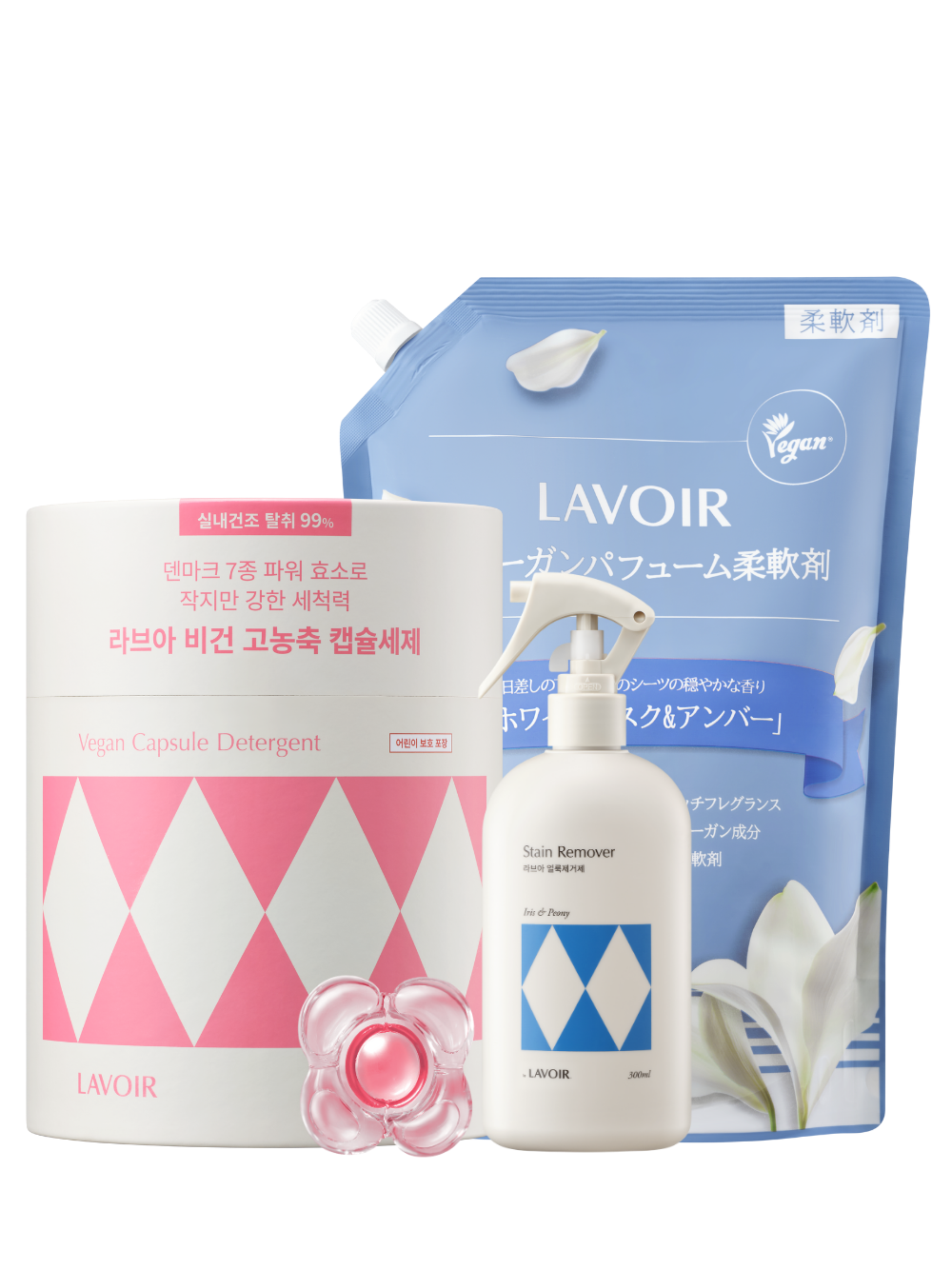 【たっぷり60回分】ボール型洗剤60個入+柔軟剤2L+シミ取り300ml